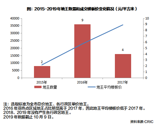 从地王数量上来看,15宗地王中2016年占了9席;从成交的平均楼板价来看,2017年价格最高。
