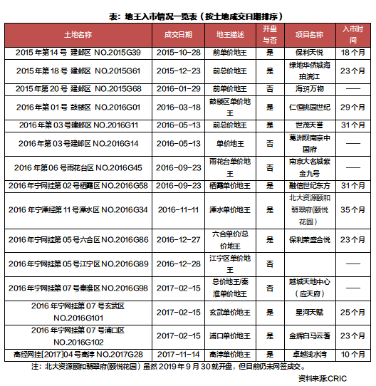 入市周期:七成地王已经开盘、平均入市周期偏长,尚未入市地王集中在建邺、秦淮