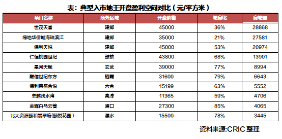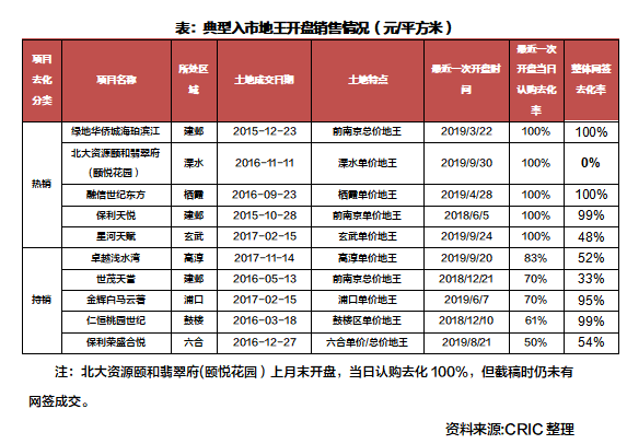 就这些入市地王项目的销售情况来看,整体表现较优。