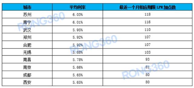 2019年9月,西安地区首套房贷款平均利率上涨了2BP,以5.65%的水平入围最高10城市名单,青岛被挤出。苏州地区首套房贷款利率环比下降1BP,仍为最高;郑州地区环比上涨15BP,跻身最高前五。