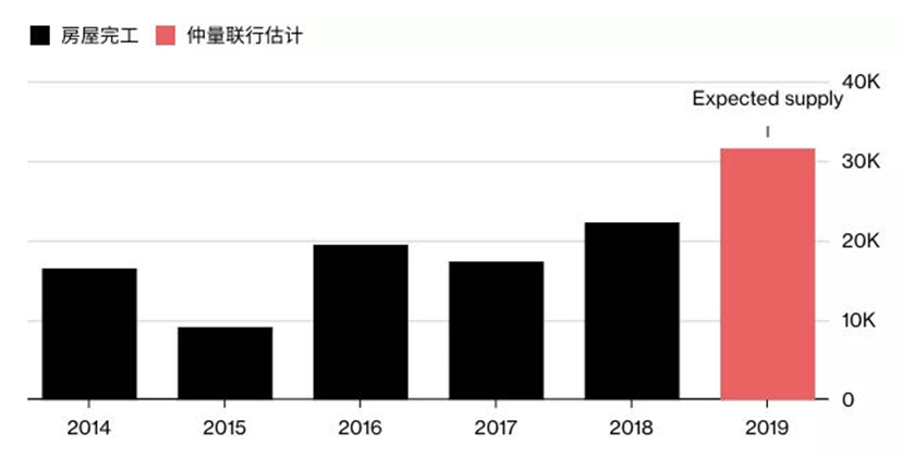 “今年迪拜可能完成超31500套房屋,是过去五年该市平均年需求量的两倍以上。”“迪拜目前还有9.6万套公寓在建,会在2020年底之前完工。”仲量联行分析报告指出。