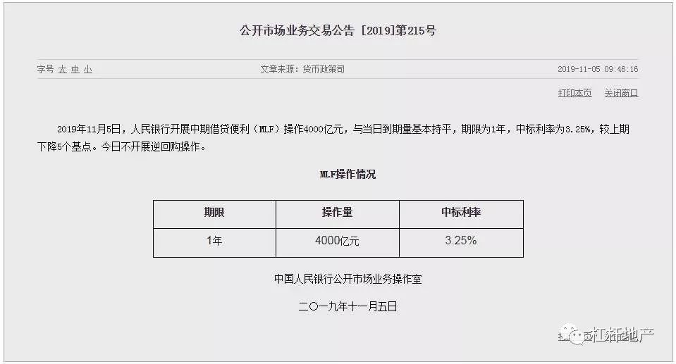 第三个阶段,也就是此次,2019年11月。央行开展4000亿元1年期MLF,中标利率3.25%,较上期下降5个基点(BP)。此后是否还会下调,或者维持,还需要观察。