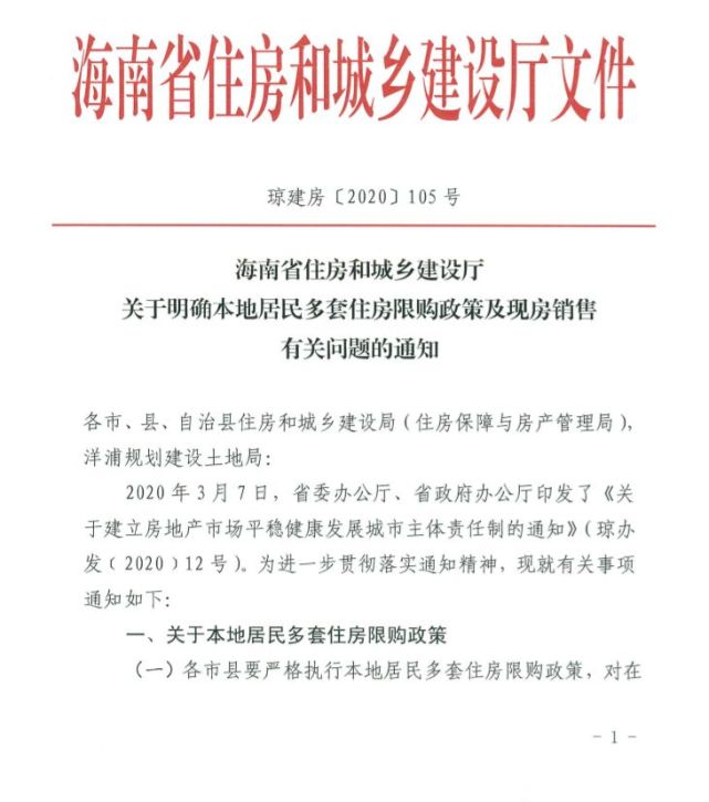 根据三亚市住房和城乡建设局主管的三亚市工程建设质量安全协会官微5月26日发布的信息看到,5月22日,海南省住房和城乡建设厅出台了《关于明确本地居民多套住房限购政策及现房销售有关问题的通知》。