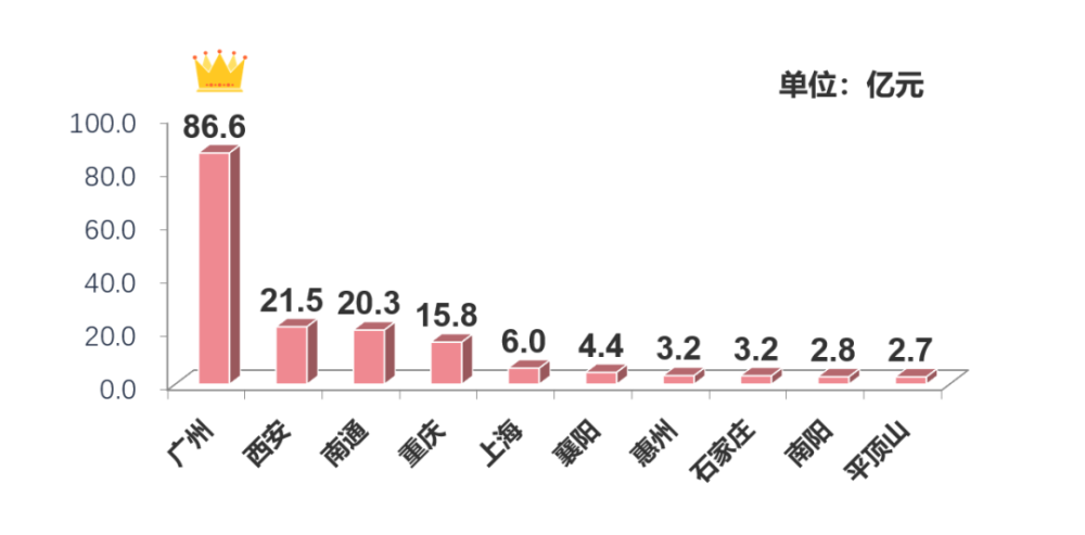 ▌出让金:榜单总额降逾一成,广州收金近87亿元居首