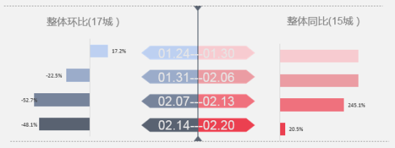 ▌周度整体:受春节假期影响,环比降幅小幅收窄