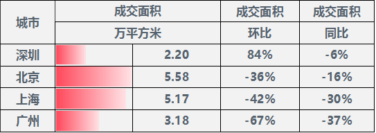 表:一线城市成交面积同环比情况