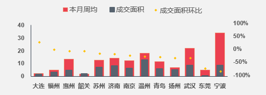 图:二三线重点城市成交面积环比涨跌幅