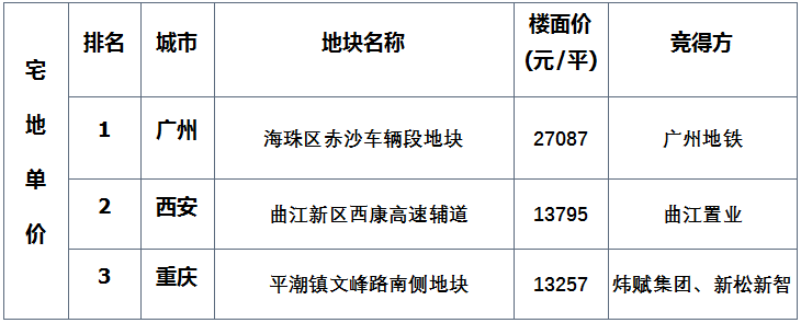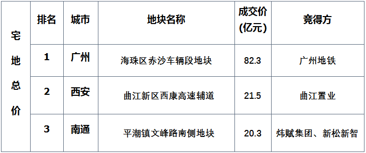 表:全国住宅用地成交总价三甲