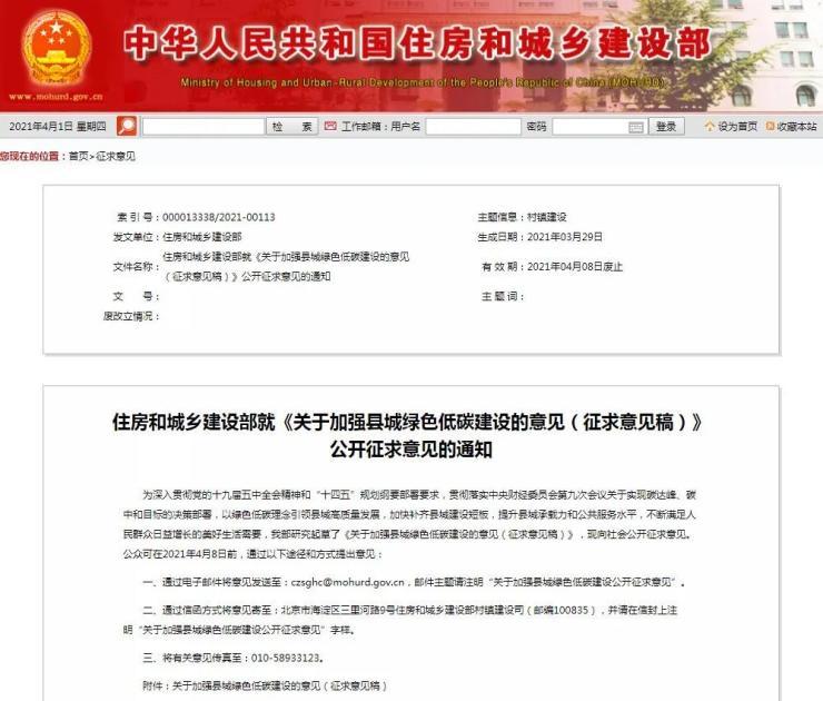 发表日期:2021-04-077天之前,国家住建局官网发布《关于加强县城绿色低碳建设的意见(征求意见稿)》公开征求意见的通知,通知表示:限制县城居住建筑高度,县城新建住宅以6层为主,6层及以下住宅占比应不低于75%。县城新建住宅最高不超过18层。确需建设18层以上居住建筑的,应严格充分论证,并加强消防应急、市政配套设施等建设。