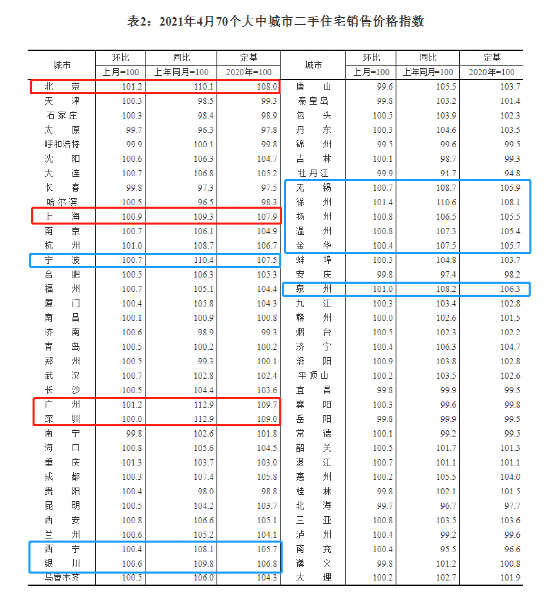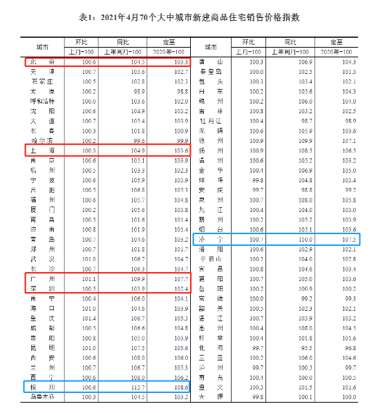 发表日期:2021-05-195月17日,国家统计局公布2021年4月份70个大中城市商品住宅销售价格变动情况。数据显示,4月份 70个大中城市新建商品住宅销售价格涨幅总体有所扩大,二手住宅涨幅有升有落。