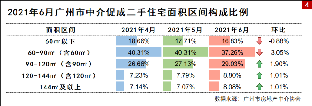 放开“三孩”政策作用到当前楼市并不明显。从6月份成交的面积房源看,建面120-144平方米、建面144平方米以上的房源各占当月成交的8.8%、8.08%。其中成交主力依然是60-120平方米的房源,其中60-90平方米的成交占37.26%,可见刚需成交积极;其次90-120平方米的成交占比29.03%。