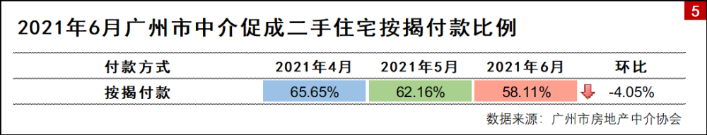 6月份,全市中介促成二手住宅的按揭付款比例连续第三个月出现环比下降的情况,下降幅度达到4.05个百分点。今年以来,房地产信贷环境持续加压,房贷利率多次上浮,放款周期拉长,以及当月有关部门明确小贷公司停止“过桥贷”“赎楼贷”业务,导致全市按揭需求表现持续疲软。