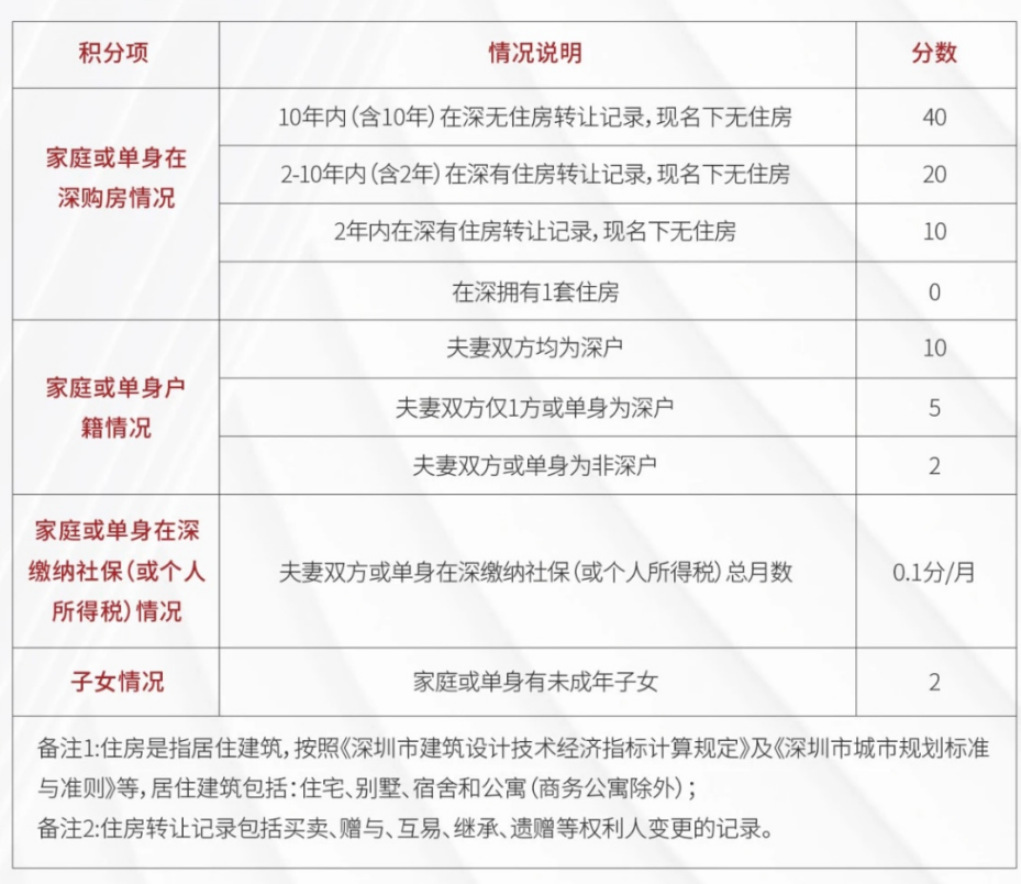深圳买房推行积分制,优先无房户,对“10年内(含)10年在深圳无住房转让记录,现名下无住房”作出40分的加分倾斜。