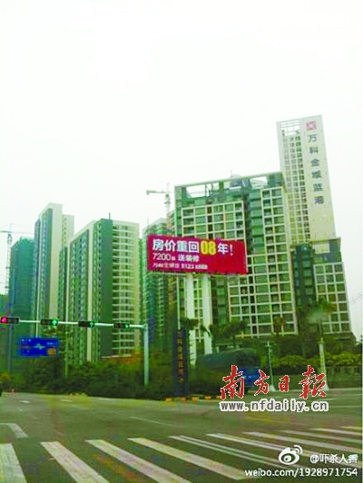 昨日,市住建局发布了11月份佛山市房地产(住宅部分)交易数据,显示全市一手房成交继10月之后再次呈现“量升价跌”的态势,其中,成交均价更是连续第三个月出现下跌,进一步接近8000元/平方米关口。地处季华路的万科金域蓝湾更是打出了“房价重回08年”的宣传口号。